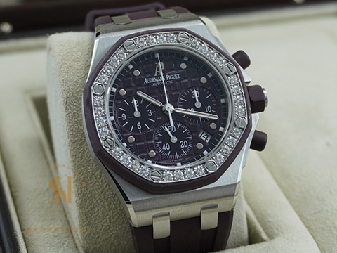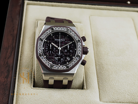 Audemars Piguet 愛彼 AP錶 Ladies Royal Oak Offshore 皇家橡樹 離岸型 26048SK.ZZ.D066CA.01 計時碼表 原廠鑲鑽 紫紅色面盤 自動腕錶 台灣公司貨 |
