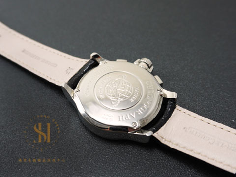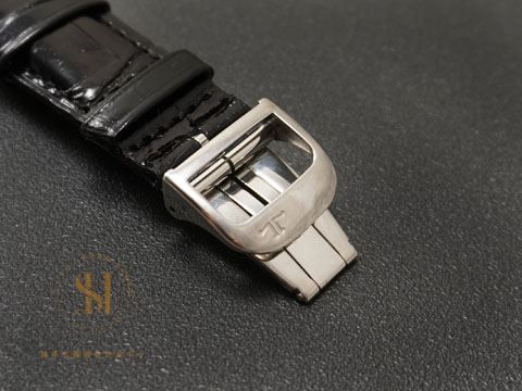不鏽鋼材質錶殼及摺疊帶扣 / 精鋼指針及立體時標 / 精鑲鑽框 / 原廠黑色鱷魚皮錶帶 / 藍寶石水晶玻璃鏡面 |
