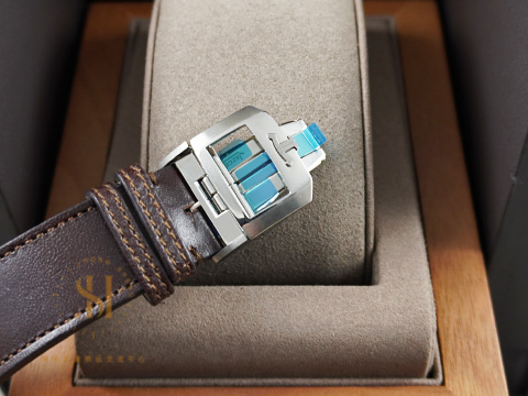 精鋼材質錶殼及三層摺疊扣 / 刻面棒形指針 / 夜光時標 / 原廠深啡色牛皮錶帶 / 抗磨損藍寶石水晶鏡面 |