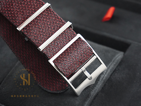 精鋼材質錶殼、旋入式錶冠及錶扣 / 紅色陽極氧化鋁單向旋轉字圈 / 夜光指針及時標 / 原廠酒紅色織紋錶帶 / 圓拱形藍水晶鏡面 |