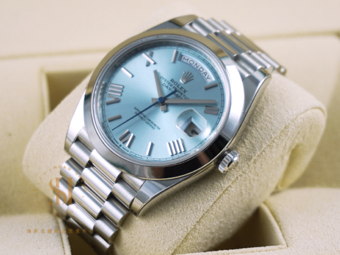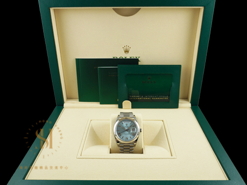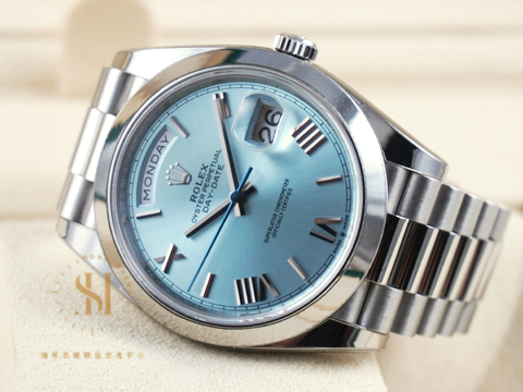 ROLEX 勞力士 DAY-DATE 蠔式 星期日曆型 228206 冰藍色面盤 PT950鉑金 羅馬數字時標 星期窗顯示 冰藍面 2022保單 新式保卡 已包RX8貼膜 |
