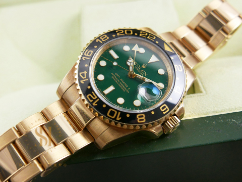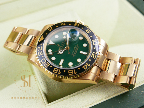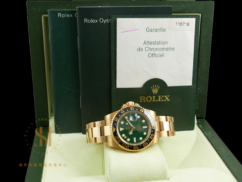 | ROLEX 勞力士 GMT-MASTER II 格林威治型 116718LN 116718 LN 18K黃金材質 綠色面盤 兩地時區 陶瓷框 自動上鍊 已包RX8貼膜 |
