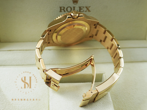 18K黃金材質錶殼、錶帶、摺疊扣、旋入式錶冠 / Cerachrom黑色陶瓷單向旋轉錶外框 / 夜光賓士指針、時標 / 藍寶石水晶玻璃 / 防偽內圈 |