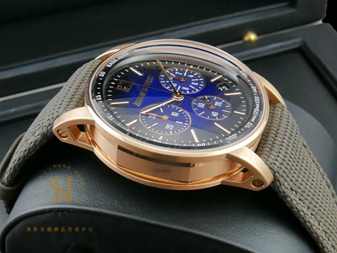 愛彼錶原廠Cal.4401自動上鏈機械機芯 / 時、分、小秒針時間指示 / 日期窗顯示 / 飛返計時碼錶功能 / 動能儲存70小時 / 生活防水 |