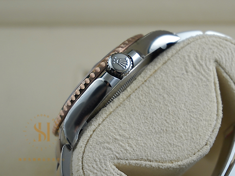 18K玫瑰金+904L精鋼材質錶殼、錶帶、摺疊扣、旋入式錶冠 / 雙向旋轉錶框 / 夜光賓士指針、時標 / 藍寶石水晶玻璃 / 防偽內圈 |