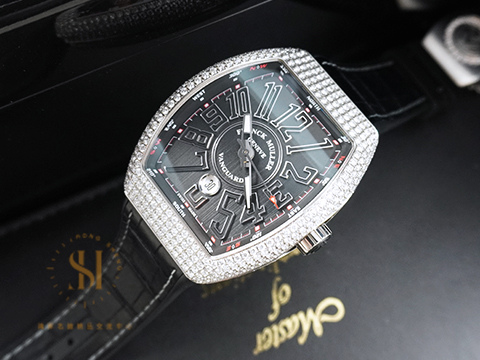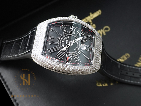 FRANCK MULLER 法蘭穆勒 Vanguard系列 V45 SC DT AC NR 酒桶型 不鏽鋼 精鑲鑽框 阿拉伯數字時標 日期顯示 2016保單