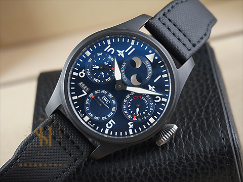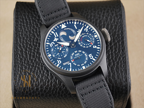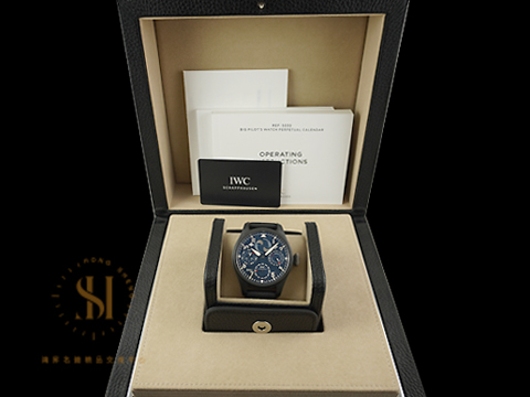 | IWC 萬國 Big Pilot's 大型飛行員年曆腕錶 IW503001 藍色面盤 萬年曆 月相顯示 南北半球雙月相顯示 陶瓷鈦金屬材質 自動上鍊 透明錶背「羅迪歐大道專賣店」特別版 2021保單 台灣公司貨 |