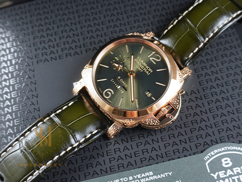 | PANERAI 沛納海 Luminor Gmt PAM01286 PAM1286 玫瑰金 綠色面盤 雷射雕刻花紋錶殼 兩地時間 八日鍊 手上鍊 台灣限量十只 台灣公司貨 2021保單 |