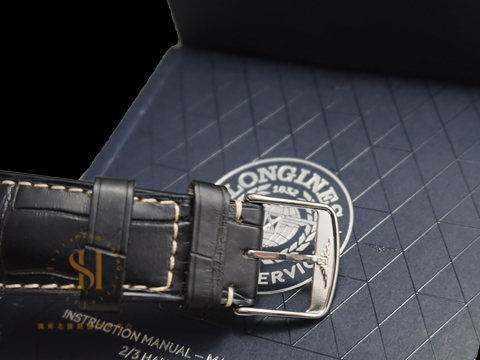 不鏽鋼材質錶殼、穿扣 / 夜光指針、時標 / 原廠黑色鱷魚皮革錶帶 / 藍寶石水晶玻璃 |