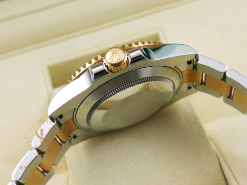 18K黃金+904L精鋼材質錶殼、錶帶、快調式摺疊扣、旋入式錶冠 / 夜光賓士指針、時標 / Cerachrom陶瓷材質藍色單向旋轉錶框 / 藍寶石水晶玻璃 / 防偽內圈 |