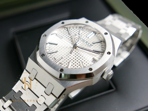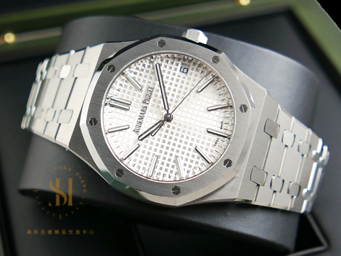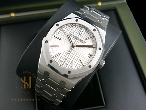 | Audemars Piguet 愛彼 AP Royal Oak 皇家橡樹 15510ST.OO.1320ST.03 鍊帶款 銀色面盤 自動上鏈 透明錶背 50週年紀念款 2022保單 新式保卡 已延長原廠五年保固(已售出) |