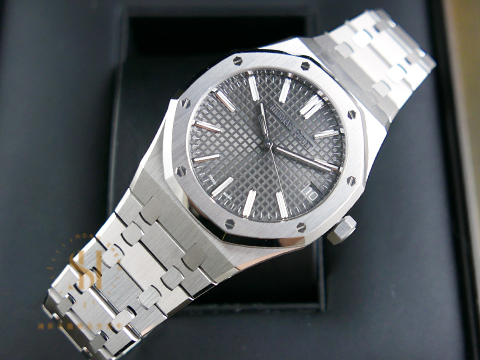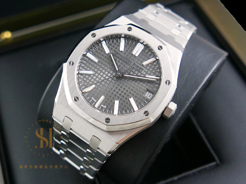 | Audemars Piguet 愛彼 AP Royal Oak 皇家橡樹 15510ST.OO.1320ST.10 鍊帶款 灰色面盤 自動上鏈 透明錶背 2024保單 新式保卡 已延長原廠五年保固 |